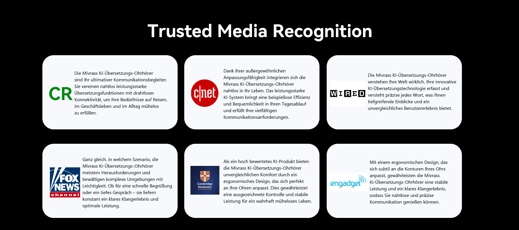 Mivrass AI Translation Earbuds waren seine Antwort. Sie liefern punktgenaue Genauigkeit, hervorragenden Komfort für den ganzen Tag und ein wirklich immersives Erlebnis. Entwickelt für die Verbindung – denn Verständnis sollte niemals Kompromisse eingehen.